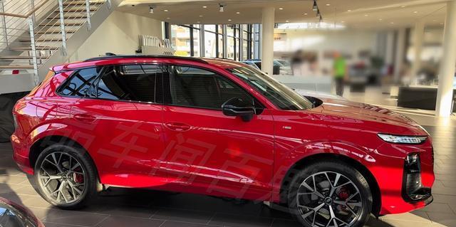 车身侧面,新车既保留了德系SUV固有的肌肉线条,还会在包含窗沿、后视镜外罩、B柱等地方进行熏黑处理,搭配内置有红色刹车卡钳的网格样式轮毂,还颇有些性能SUV的味道。